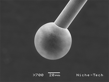Niche-Tech Copper (Cu) bonding wire offers significant cost advantage over Gold (Au) bonding wire. Our Cu bonding wire is an excellent replacement for Au bonding wire due to its similar electrical properties and the cost advantages.